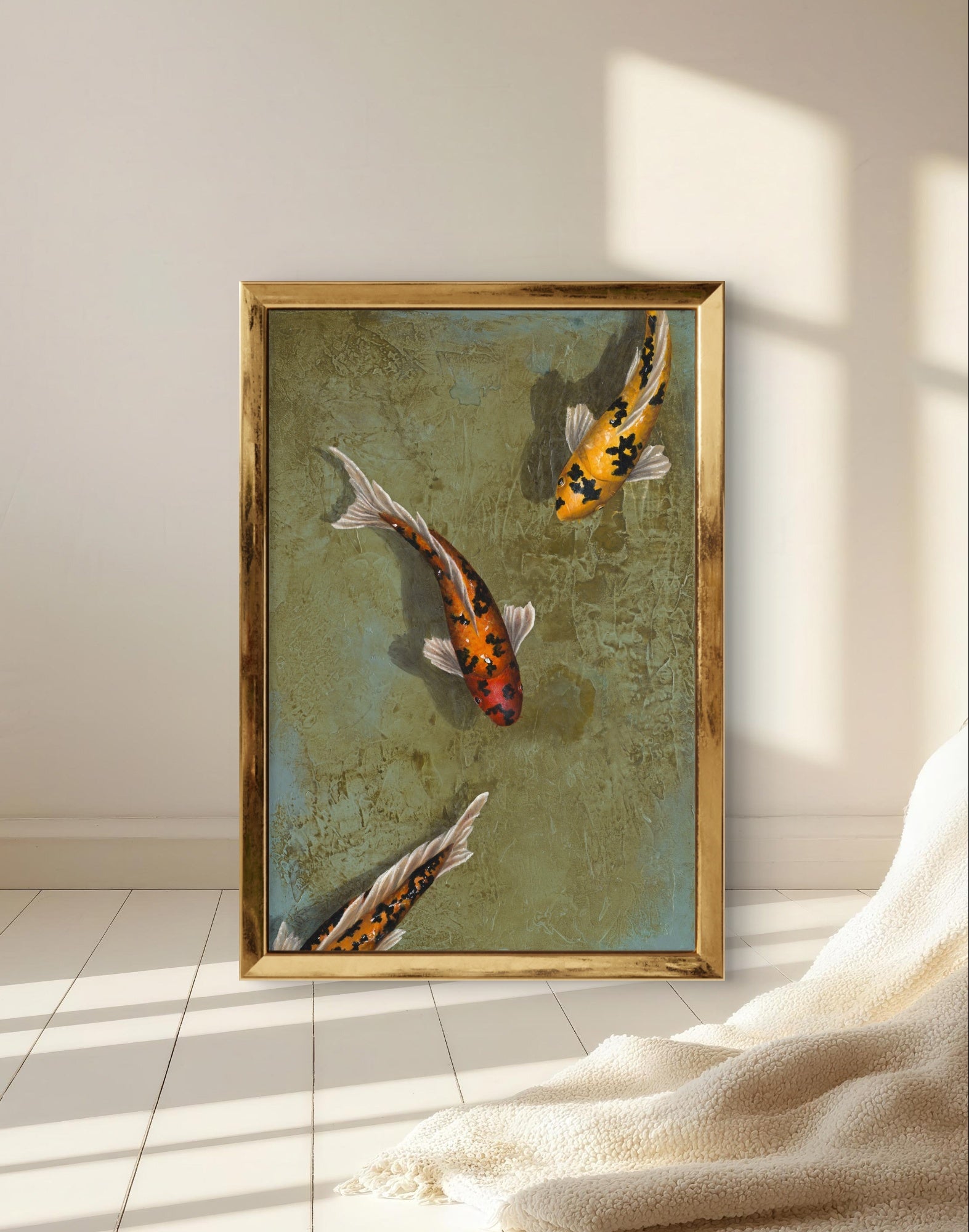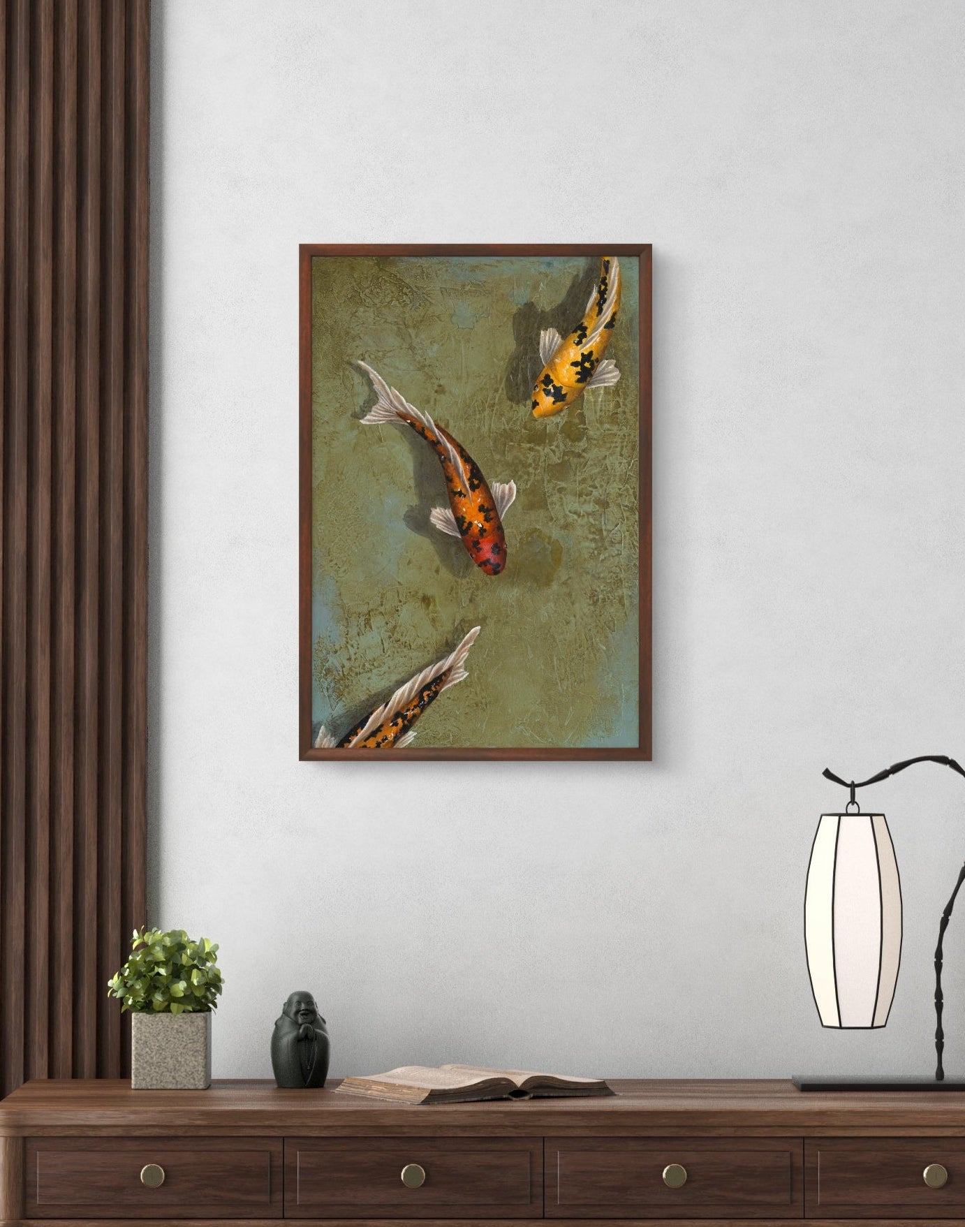 Koi art can fit various styles of interior design, from traditional to modern, making it a versatile choice for both home and office environments.