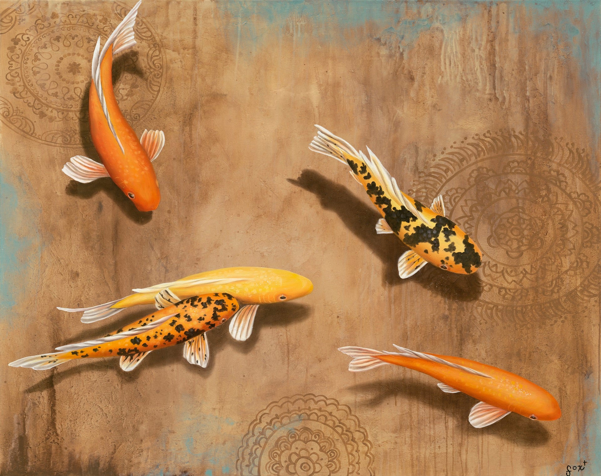 The vibrant colors and fluid movements of koi can also create a calming atmosphere, which may help reduce stress and promote relaxation. They evoke a sense of tranquility found in nature, reminding viewers of serene water gardens and outdoor landscapes.